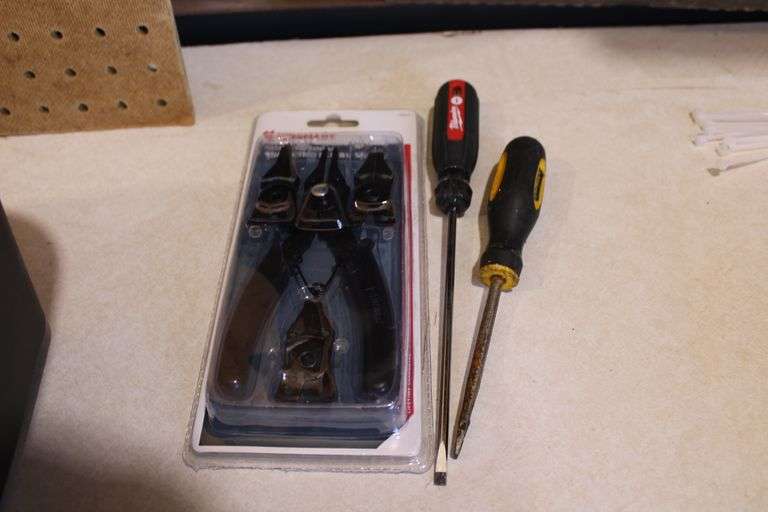 LOT 742 - New Snap ring tool & 2 screwdrivers