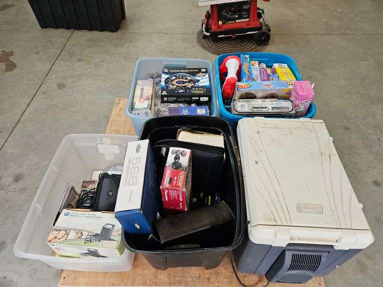 12v cooler, video recorder, games, puzzles, other misc