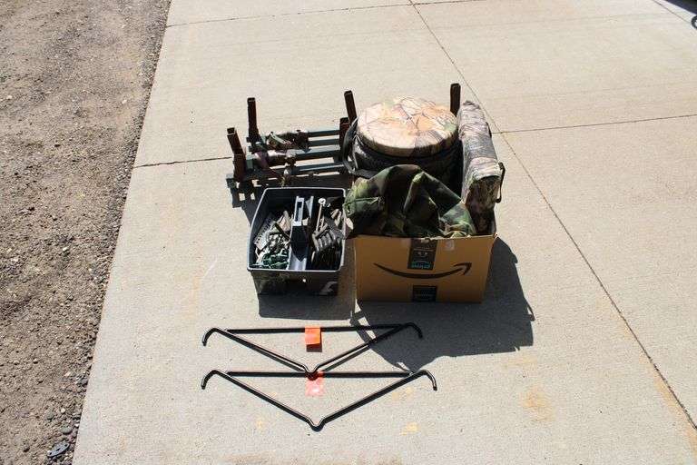 Hunting stool, hot seats, tree steps, 2 deer hangers, ladder sections