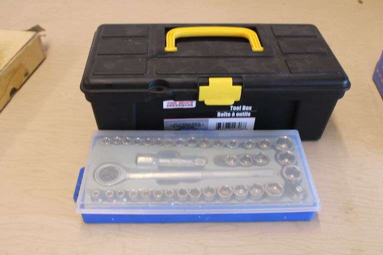 LOT 716 - Sm. plastic tool box w/misc. tools