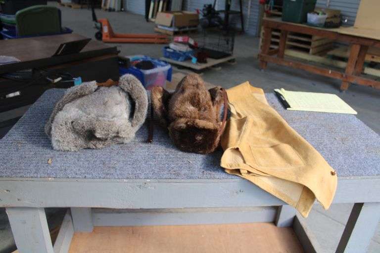 LOT 1180 - Rabbit & Fur Bomber hats & leather vest