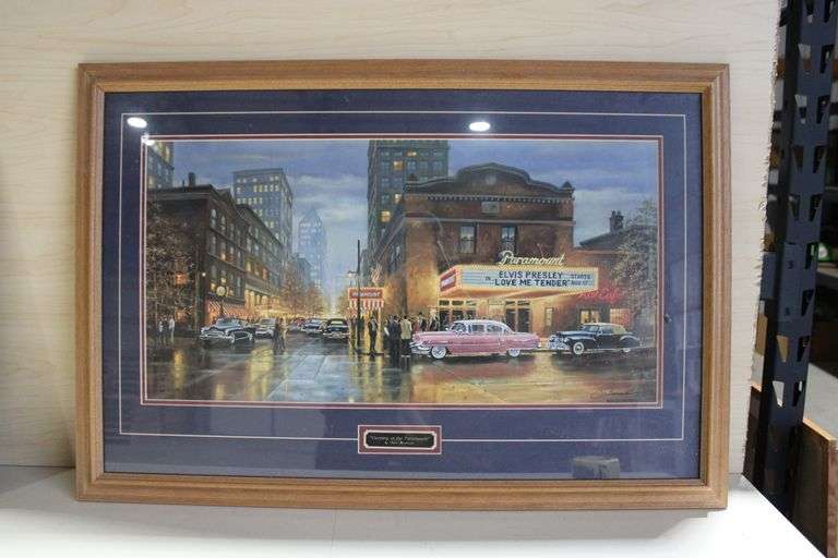LOT 1357 - Framed Elvis at Paramount print, 25" x 37"