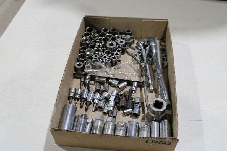 LOT 572 - Flat of sockets, crows feet, ratchets & related