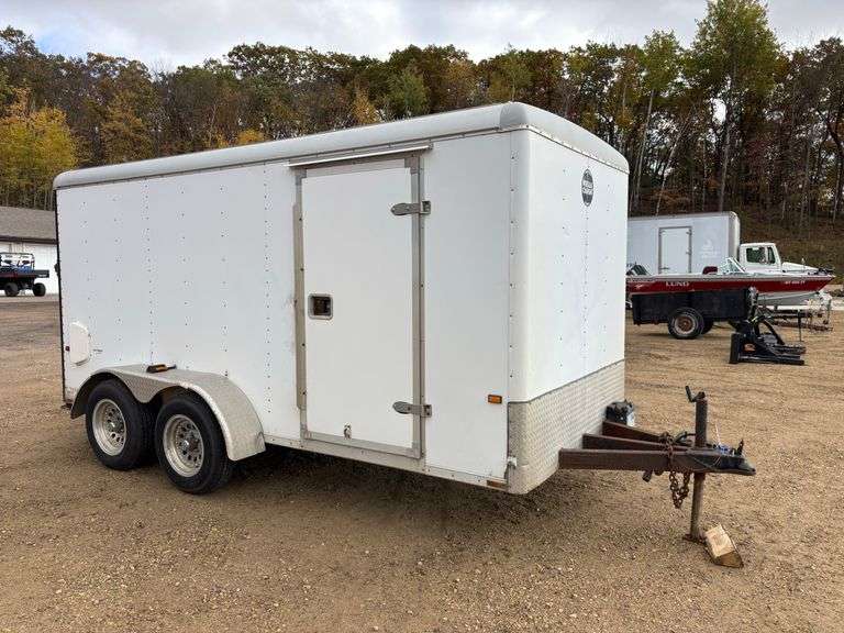- 6ft x 14ft Enclosed trailer w/ rear and side door...Rear door hinge needs to be rewelded on and rear frame strengthened for hinges.