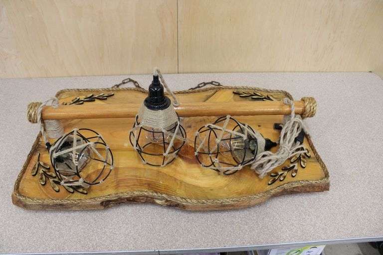 19" x 32" Wood hanging light fixture w/dimmable bulbs
