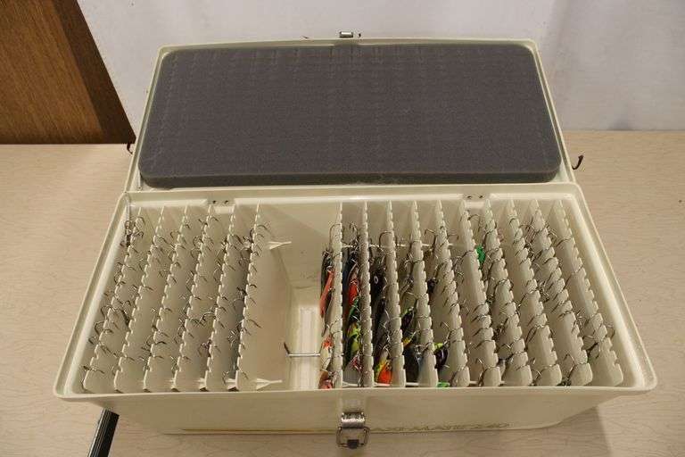 LOT 1012 - Maxi Mate 22" plastic bait organizer w/variety of spoons
