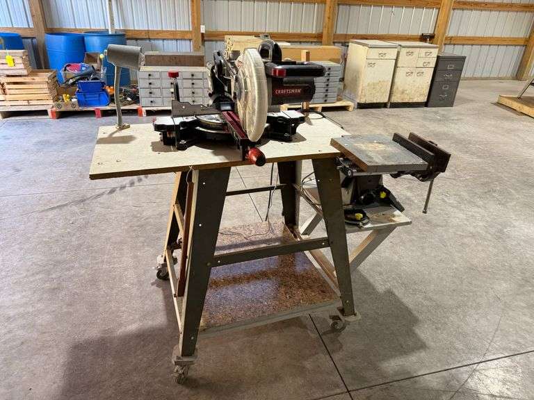 Craftsman 10" sliding compound miter saw w/ lazer line - Performax 4"x36" belt/6" disc sander - all on nice table w/ casters & vise