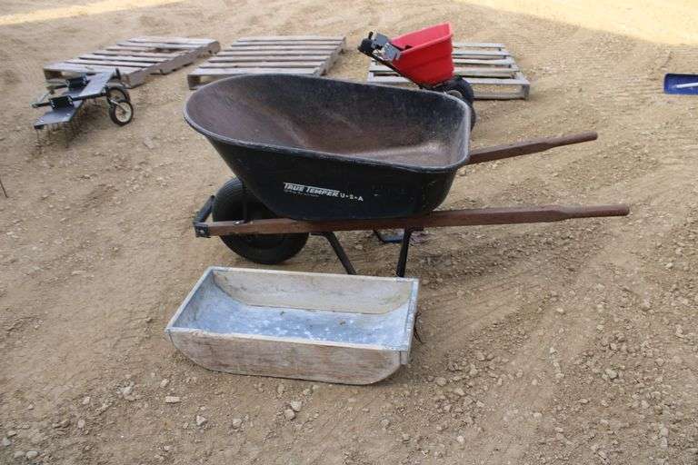 LOT 636 - True Temper wheel barrow w/mud bucket