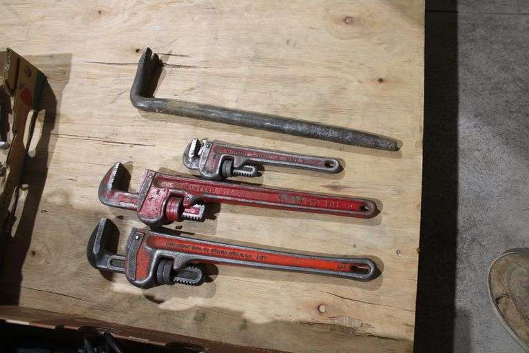 LOT 697 - 3 pipe wrenches & HD bar